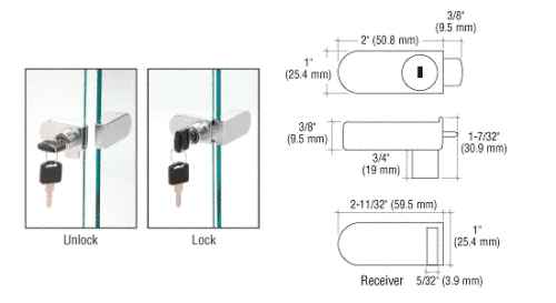 Vitrinenschloss für Glastüren bis 6 mm Glas. Dieses Vitrinenschloss für Glastüren erfordert ein 19 mm Loch im Glas.