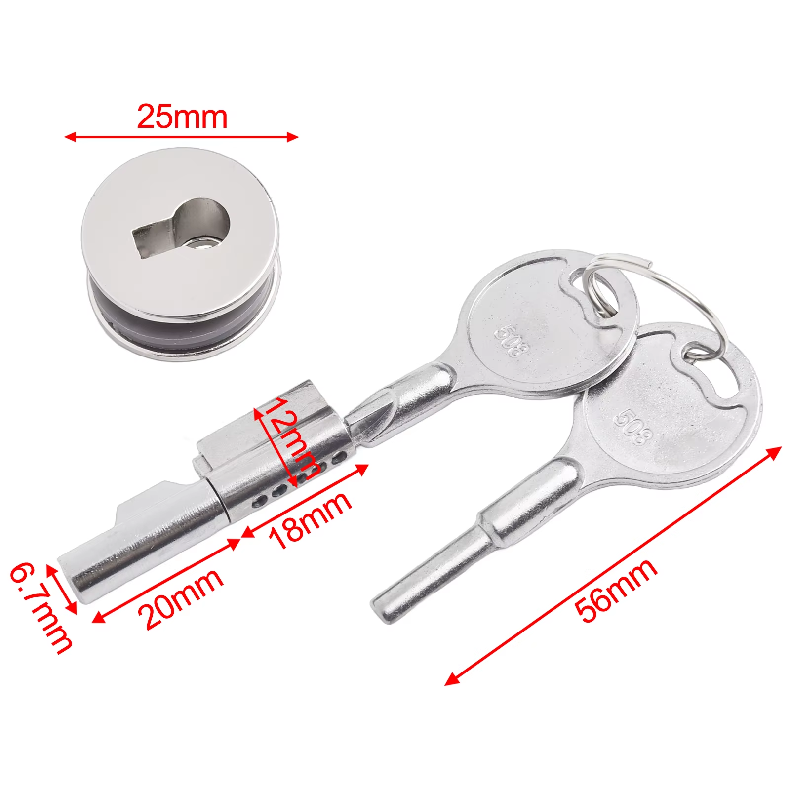 Vitrinenschloss für Glastüren oder Glasvitrinen bis 6 mm Glas. Das Vitrinenschloss benötigt eine 25 mm Lochbohrung im Glas.