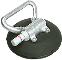 Saugheber aus Metall mit Handpumpe und einem Sicherungsring. Der Saugheber kann bis 150 kg tragen.