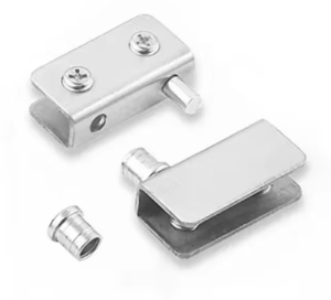 Zapfenscharniere für Glasvitrinen mit Glastüren von 5 mm bis 8 mm Glas. Diese Zapfenscharniere benötigen keiner Löcher im Glas.