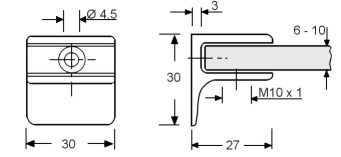 Glass Shelf Clamps with steel screw, for 6 - 10 mm glass-thickness.