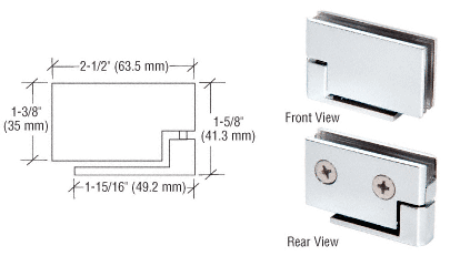 The Cabinet Pivot Hinges can be used with 1/4 or 5/16 inch (6 or 8 millimeter) glass. The maximum recommended door width is 24 inches (610 millimeters). The recommended maximum weight of the door should not exceed 50 pounds (22.7 kilograms). Minimum clearance required is 1/4 inch (6.3 millimeters) both top and bottom. Required glass fabrication for hinges installation is one hole and one cut out.