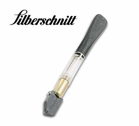 Cortavidrios con rulina de metal duro de alta calidad, versión de plástico con depósito de aceite transparente, mango de plástico, forma tradicional, agarre latón macizo, cabezal de corte ancho oscilante a 30°,distancia al corte de 2,5 mm.
